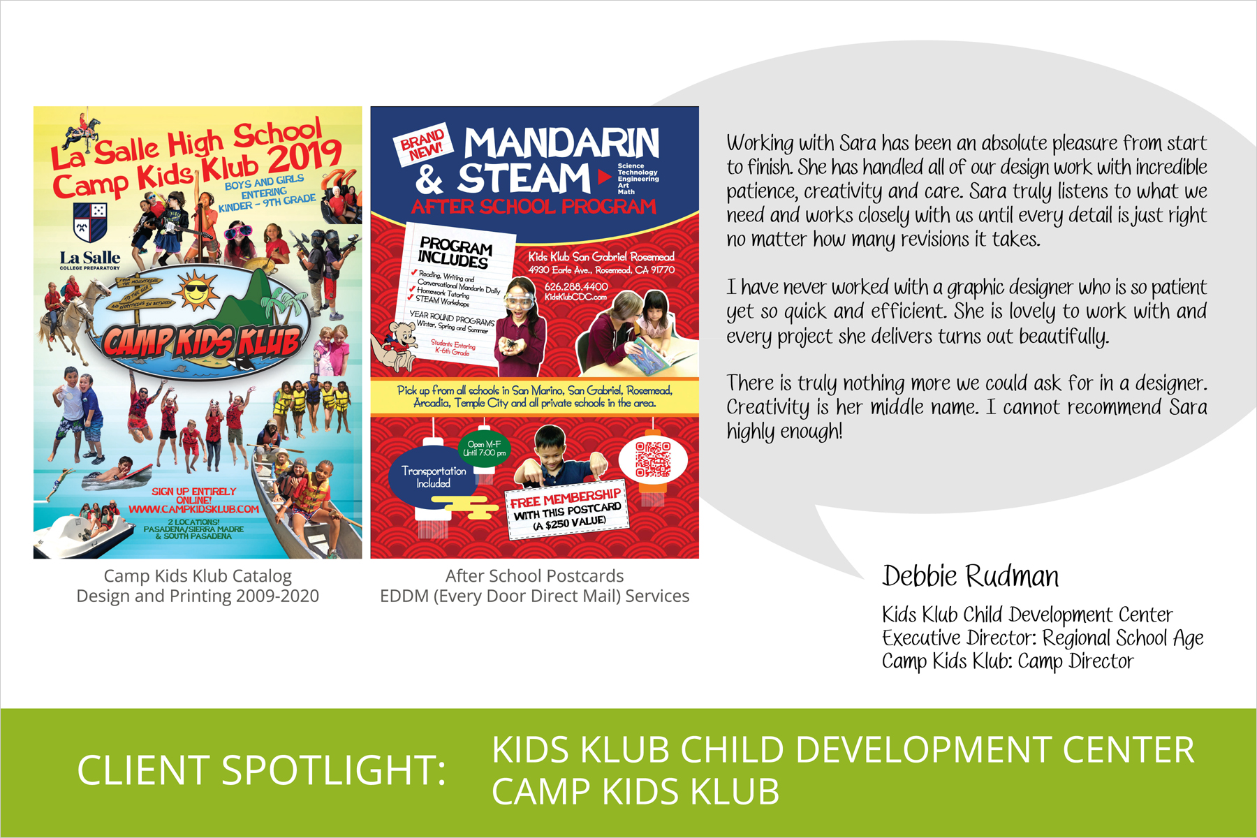 Graphic design and testimonials